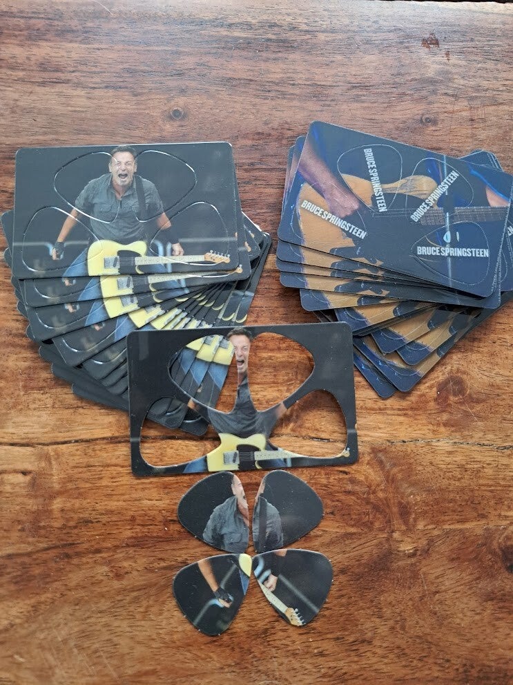 4 uitdrukbare plectra in creditcard formaat. Na gebruik kunnen de plectra weer worden teruggeplaatst in de card.