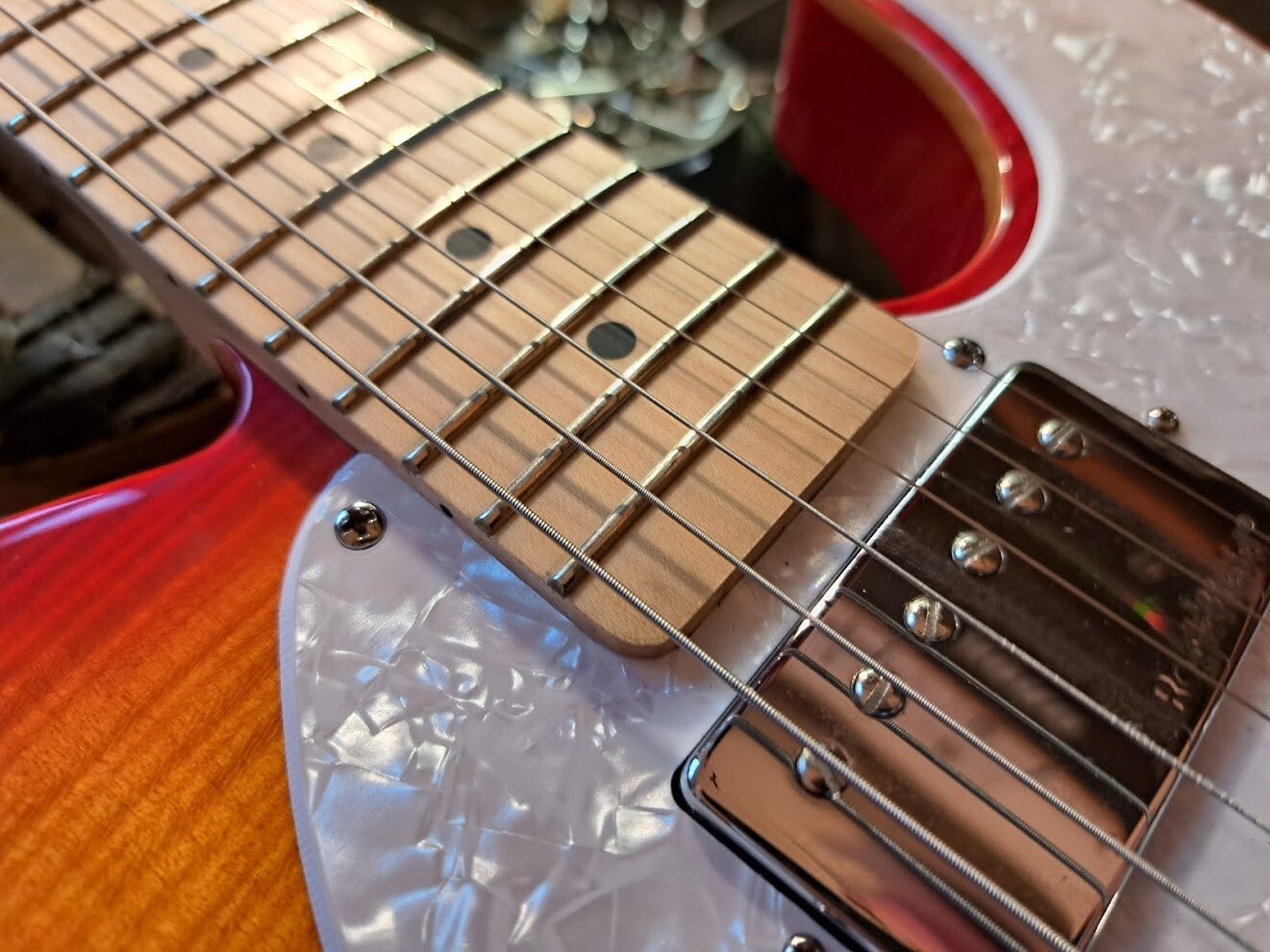 - Fretboard: Pau Ferro (Dark Tiger's Eye) and Maple (Cherry Sunburst)