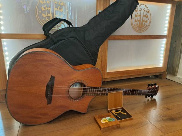 Een extra Luxe Pack voor je staalsnarige westerngitaar dat betaat uit een extra stevige CLX GTW50 draagtas, een hoogwaardige CLX trigger capo in een leuk en handige houten opbergcase waar we gratis je naam in graveren en een set van 6 verschillende plectra.