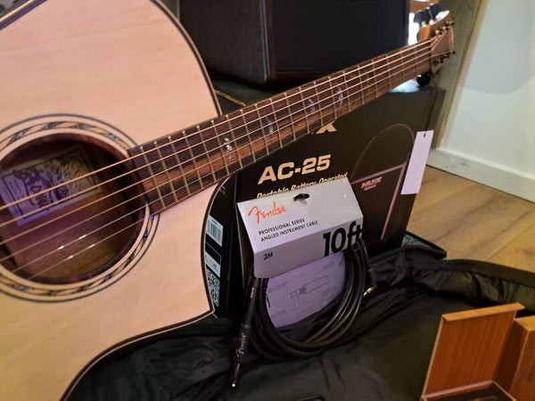 De AC25 van NUX is een compacte akoestische gitaarversterker met een vermogen van maar liefst 25 Watt! Heel handig is de ingebouwde accu waarmee je hem uren achtereen kunt gebruiken zonder stopcontact. De AC25 heeft twee aansluitingen, zo kun je ook een microfoon aansluiten of een tweede gitaar.