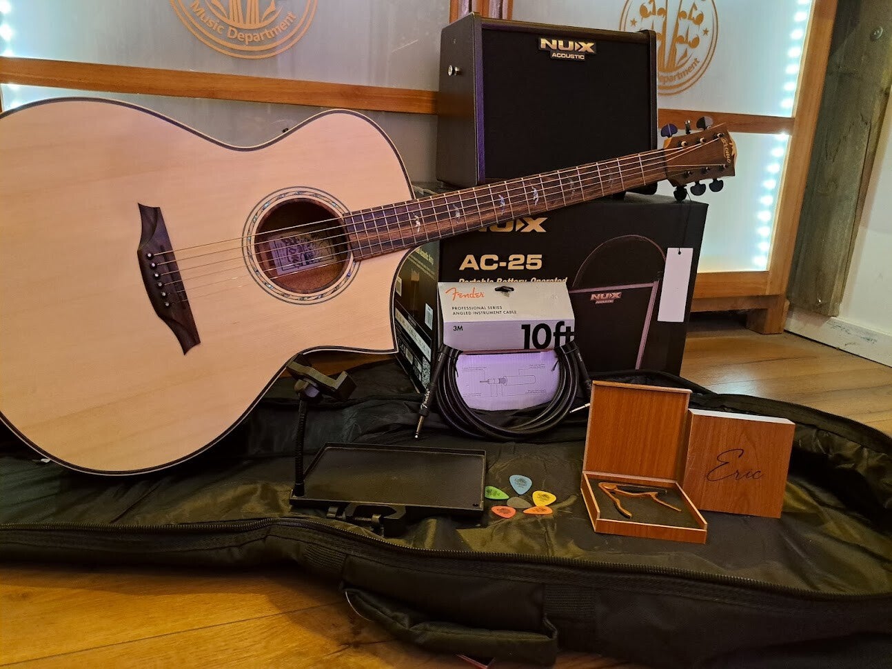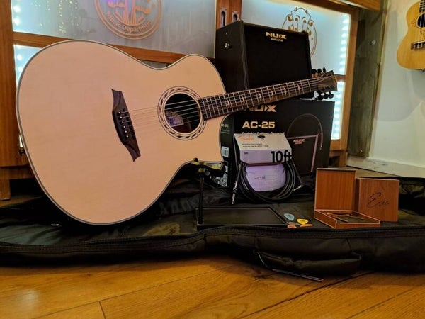 Binnen een jaar mag je nog een keertje langskomen voor een gratis servicebeurt (t.w.v. €29,95) zodat je gitaar in topconditie blijft.