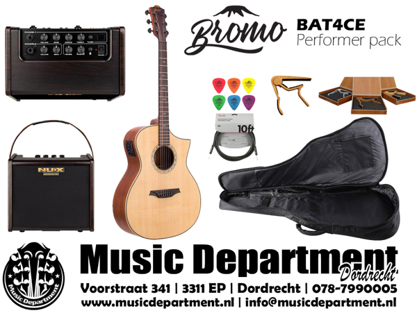 De Bromo BAT4CE uit de Tahoman Series is een zogenaamde electro-akoestische staalsnarige gitaar die je ook kunt aansluiten op een versterker. Deze gitaar heeft een massief sparrenhouten bovenblad en zij/achterkant van mahonie, deze combinatie geeft de gitaar een mooie volle maar ook heldere sound de met de jaren alleen nog maar beter zal worden. De massieve mahonie hals is uitgerust met een super slijtvast fretboard van Amara Ebbenhout met daarop zeer goed afgewerkt fretwerk. Door de Hilside cutaway in de body zijn ook de hogere posities makkelijk te bereiken.