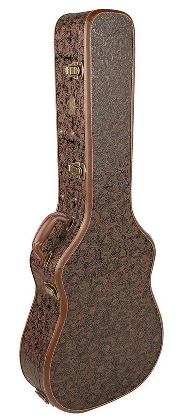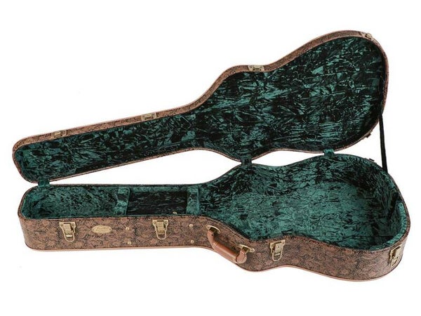 Een combinatie van mooi, functioneel en super degelijk. De CAC720J is een hardcase voor je Jumbo model gitaar waar je graag mee gezien wilt worden. De binnenzijde is voorgevormd en voorzien van een dikke fluwelen groene pluche interieur met een ruim opbergvak. De copper hardware geeft deze koffer een extra vintage look. De buitenzijde is afgewerkt met een carved tolex bekleding.