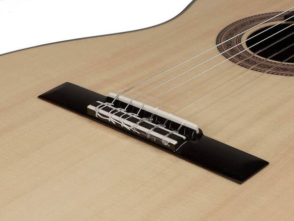 De MC58S van Martinez Guitars is de variant met een massief bovenblad van sparrenhout. Deze gitaar klinkt net even helderder dan de MC58C met Ceder bovenblad. Ben je opzoek naar een goedklinkende en heerlijk licht spelende klassieke gitaar onder de €300,00? Dan heb je hem hier gevonden!