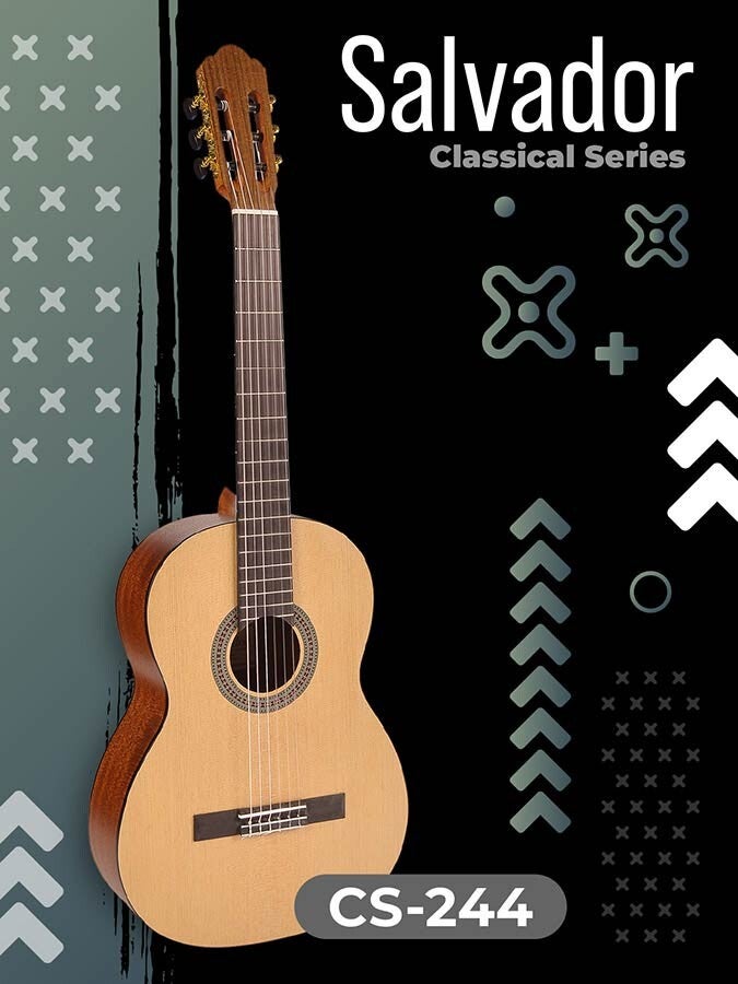 De ideale gitaar voor wie wil gaan starten met gitaarspelen en dat ook direct goed wil doen voor een redelijke prijs. De CS244 van Salvador ziet er uit als een gitaar uit een veel hogere klasse. Gemaakt van goede houtsoorten en heel mooi afgewerkt met satin lak.