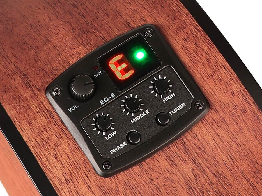 De CS244E heeft een ingebouwd actief element met een 3-band Equalizer en volume regelaar. Helemaal handig is de ingebouwde tuner waarmee je in een handomdraai je gitaar perfect op stemming zet.